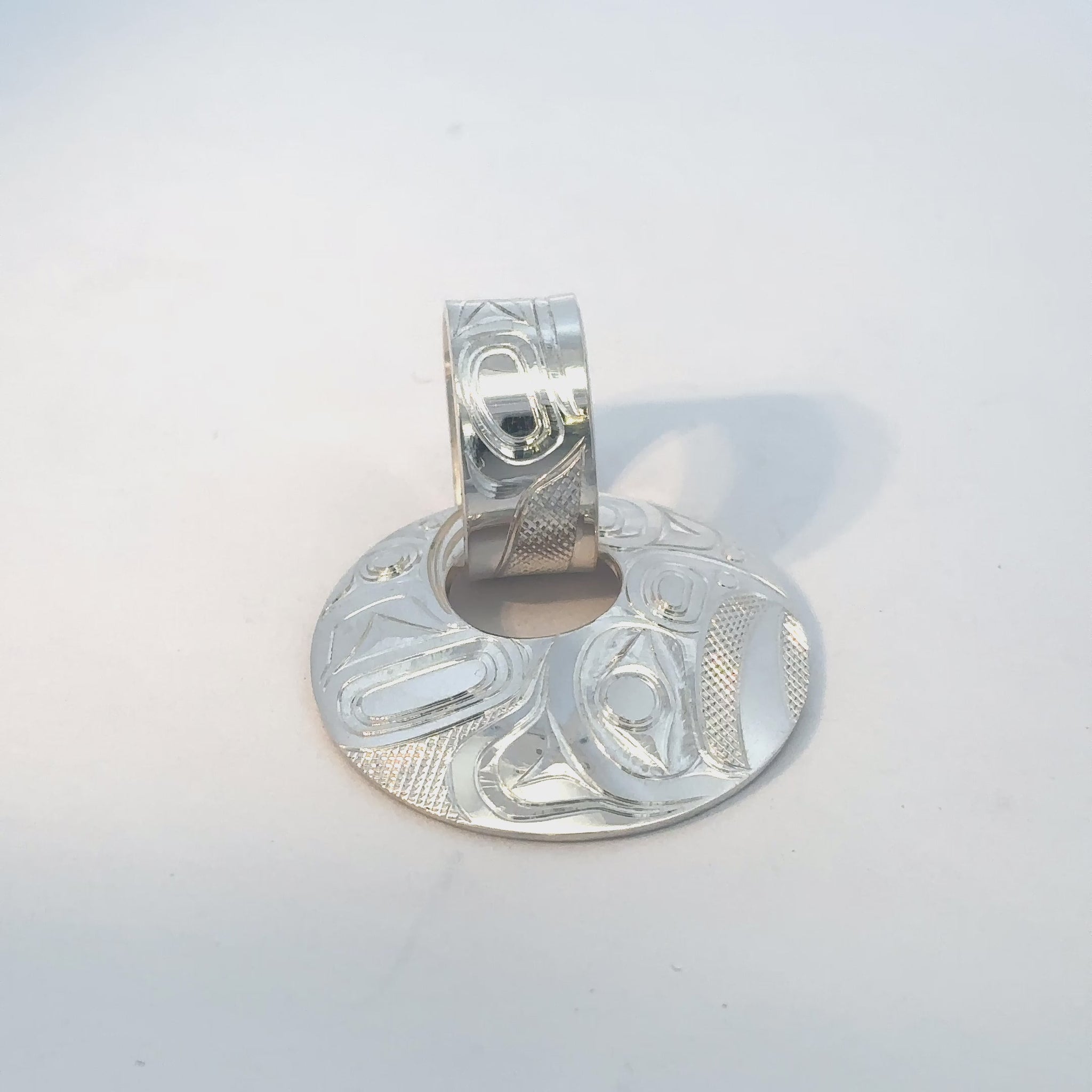 Silver carved pendant with silver bead hoop
